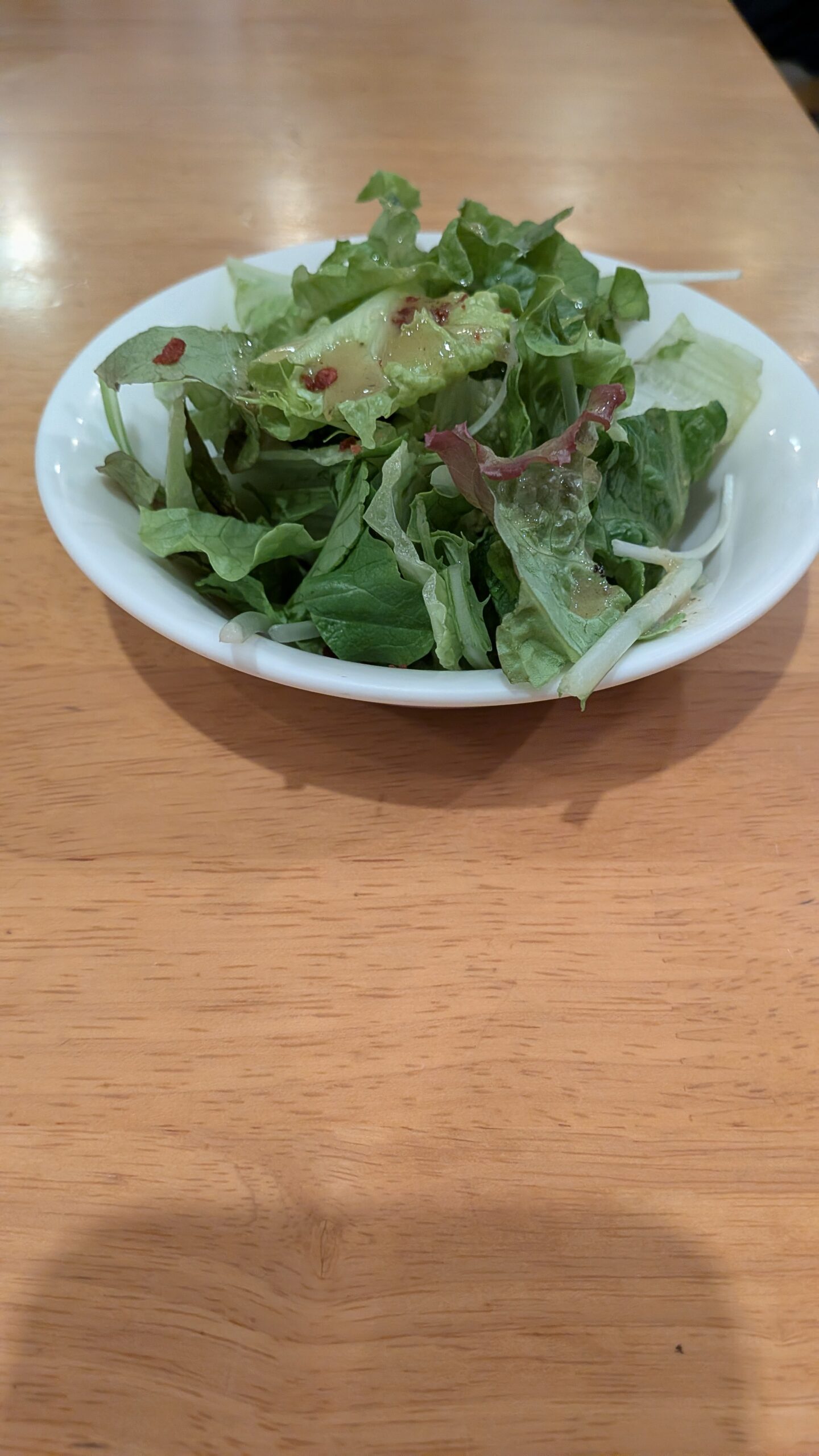 通されたお席で、lunchセットではなく単品で注文して食べていたら、4人組の方がお店に入って来られ、満席だったので、そのお客様、待たされる事に。 気づいたら、隣の2人用テーブルが空いていたので、お店の方にお声掛けして、私!移動しました。 そうしたら。 サラダのサプライズ!です。 引き寄せ